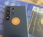 User Instruction: remove the protective paper to bare the self-adhesive surface and then press the Platinum Matrix Holographic Electromagnetic Neutralizer on a flat surface of an electric appliance.